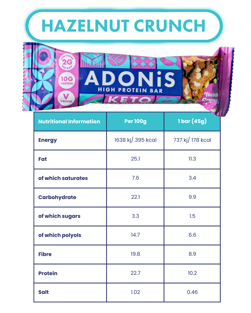 - 16 x High Protein Keto Bars (Hazelnut Crunch & Cocoa)